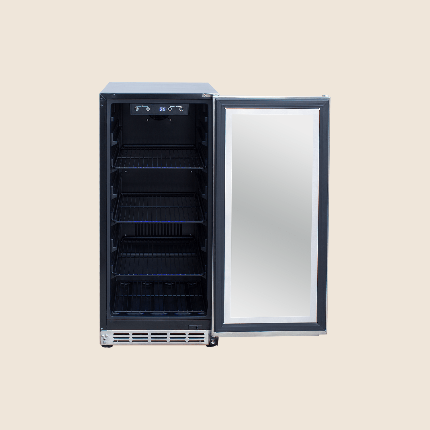 Premium refrigeration from Summerset Grills features a 15-inch Outdoor Refrigerator w/ Glass Door. With 3.2 cubic feet of storage, a temperature range of 32°F – 50°F degrees, and a Gold Standard Warranty, this appliance will help keep your food fresh, wine chilled, and beer cold, bringing the function of your indoor refrigerator outside in a compact sleek style.
