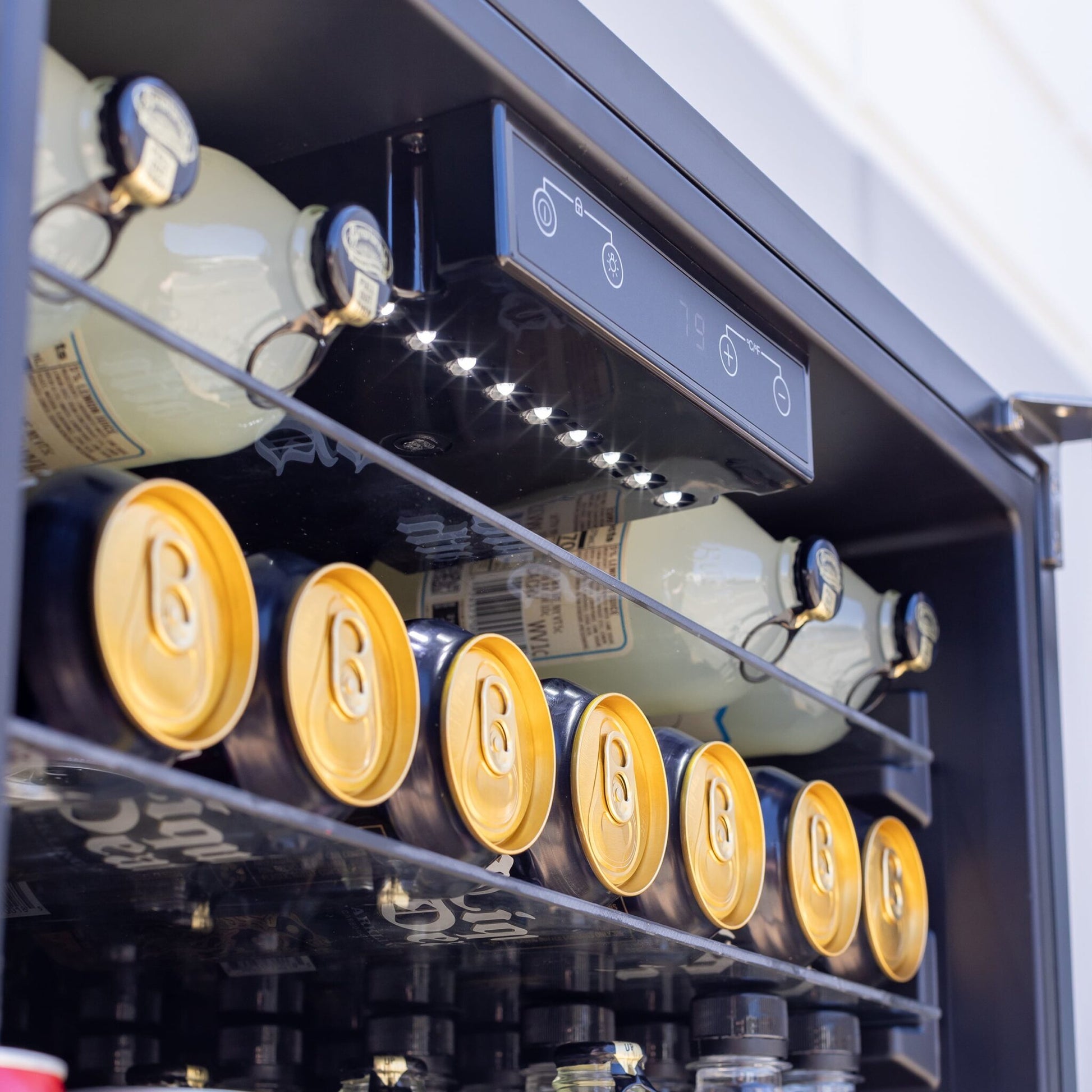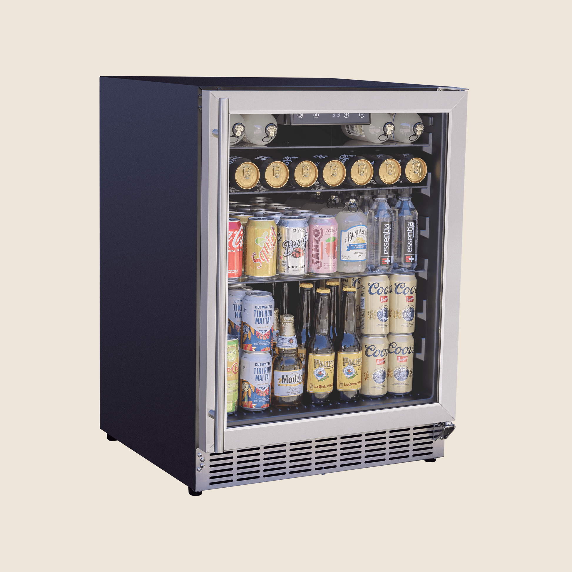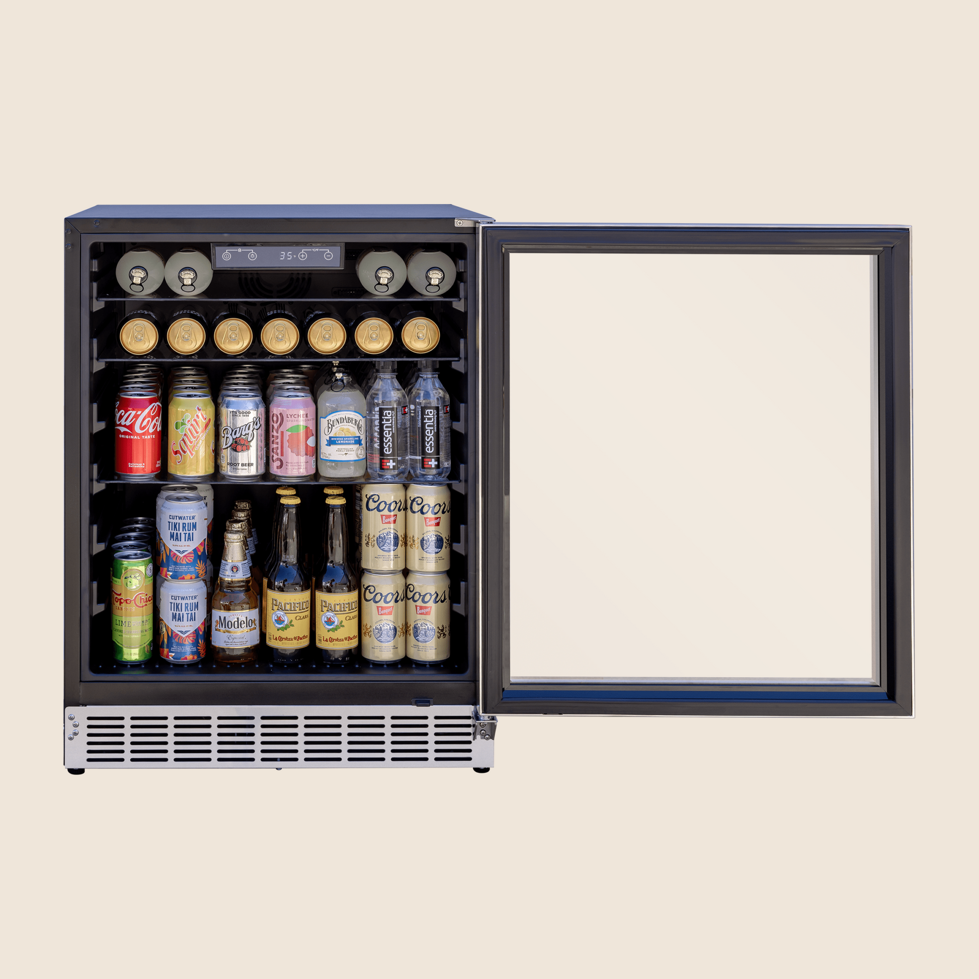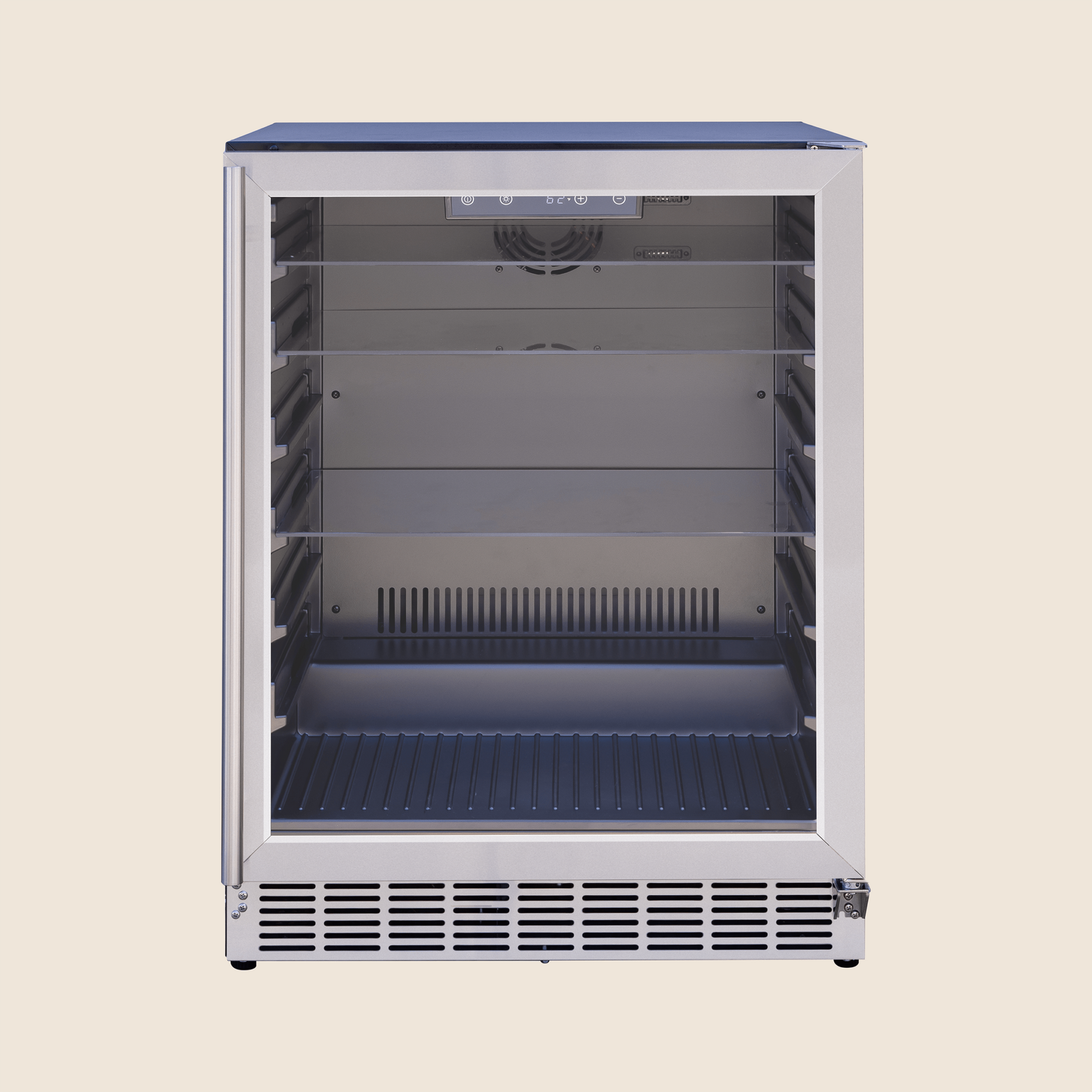 Premium refrigeration from Summerset Grills features a 24-inch Outdoor Refrigerator w/ Glass Door. With 5 cubic feet of storage with 161 Can Capacity, a temperature range of 32°F – 72°F degrees, and a Gold Standard Warranty, this appliance will help keep your food fresh, wine chilled, and beer cold, bringing the function of your indoor refrigerator outside in a compact sleek style.