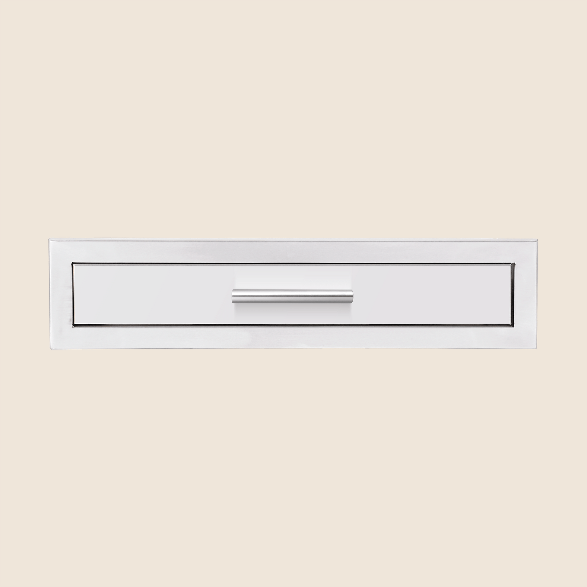 Bring efficiency and function to your outdoor kitchen with Summerset Drawers. Summersets 25.6″ x 6″ Utensil Drawer offers #304 Stainless Steel Construction, Hingeless Design, Stainless Steel Mounting Tabs, Smooth Gliding on Heavy-Duty Tracks, Summerset Bar Handle, and a Gold Standard Lifetime Warranty.